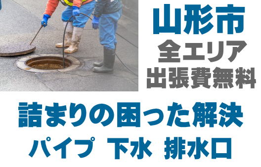 山形市の水回りの詰まりを即解決!キッチン、トイレ、風呂、洗面、マンホール、雨どい、シンク、厨房、グリストなどの詰まりトラブル対応。